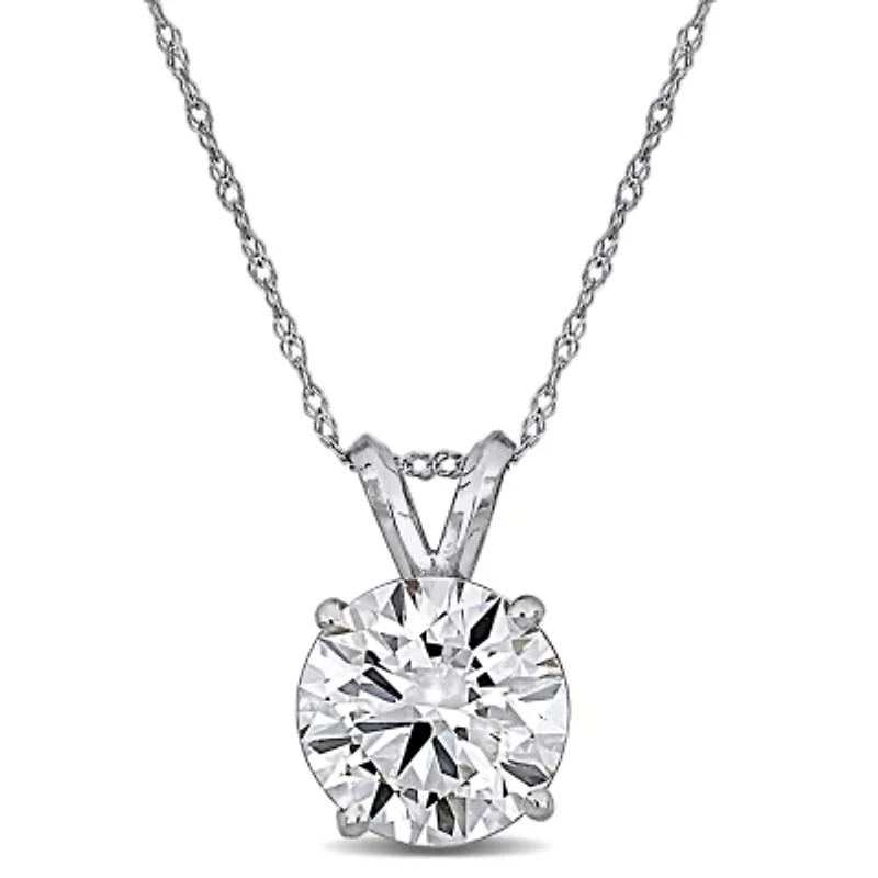 This exquisite lab-grown diamond solitaire pendant is set in 14k white or yellow gold, designed to showcase a single, brilliantly cut diamond with exceptional clarity and sparkle. The minimalist design emphasizes the diamond’s natural beauty, making it the perfect statement piece for any occasion. Suspended from a matching chain, the pendant sits elegantly at the neckline, combining sophistication with everyday wearability. Ideal for gifting or treating yourself, this timeless piece adds a refined touch to any jewelry collection. Lobster closure, 1 lab grown diamond Color rating: D Clarity rating: VVS2 Polished finish Prong setting Warranty available, 60 days Canada Imported Product Specifications 9.4-mm width x 14-mm height, 18" 3 ct. t.w. lab grown diamond Material & Care 14K White Gold Metal, White gold Clean with a soft cloth.