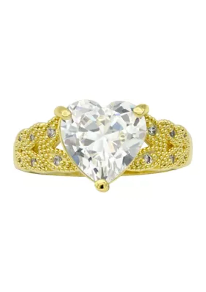 Lab Grown Gold Tone Heart-Shaped Cubic Zirconia Ring