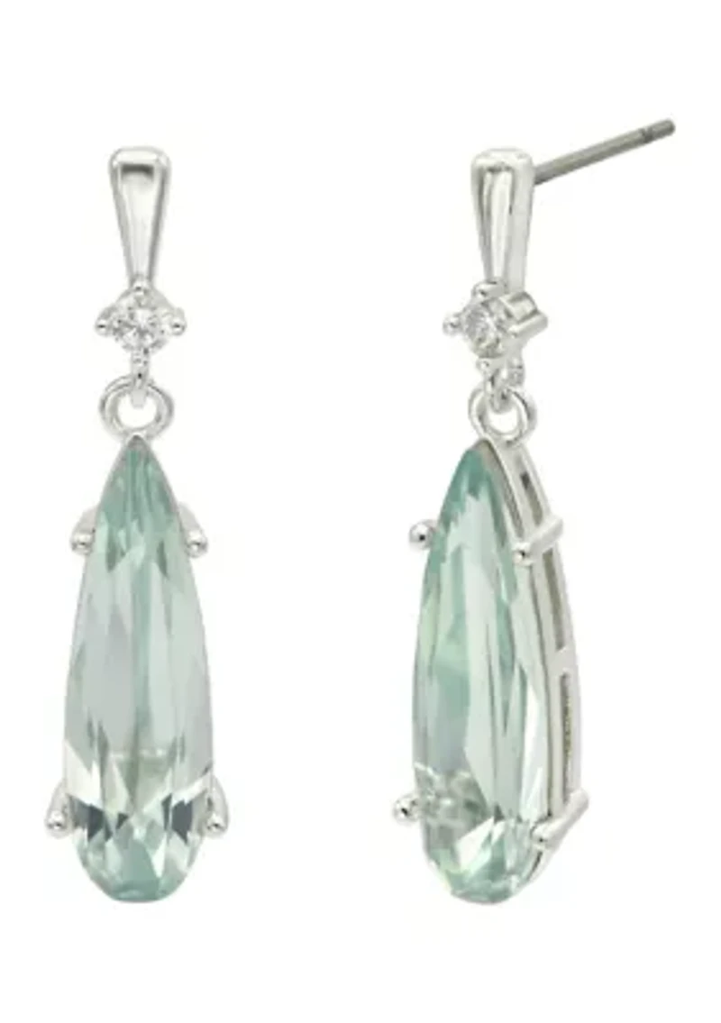 These lab-grown silver-tone teardrop earrings from evie & emma feature a violet crystal accented with sparkling clear cubic zirconia. Designed with an elegant silhouette, they add a polished touch to both everyday looks and special occasions. Post back earring Polished finish Imported Belk Exclusive Material & Care Brass Silver-tone metal Clean with a soft cloth