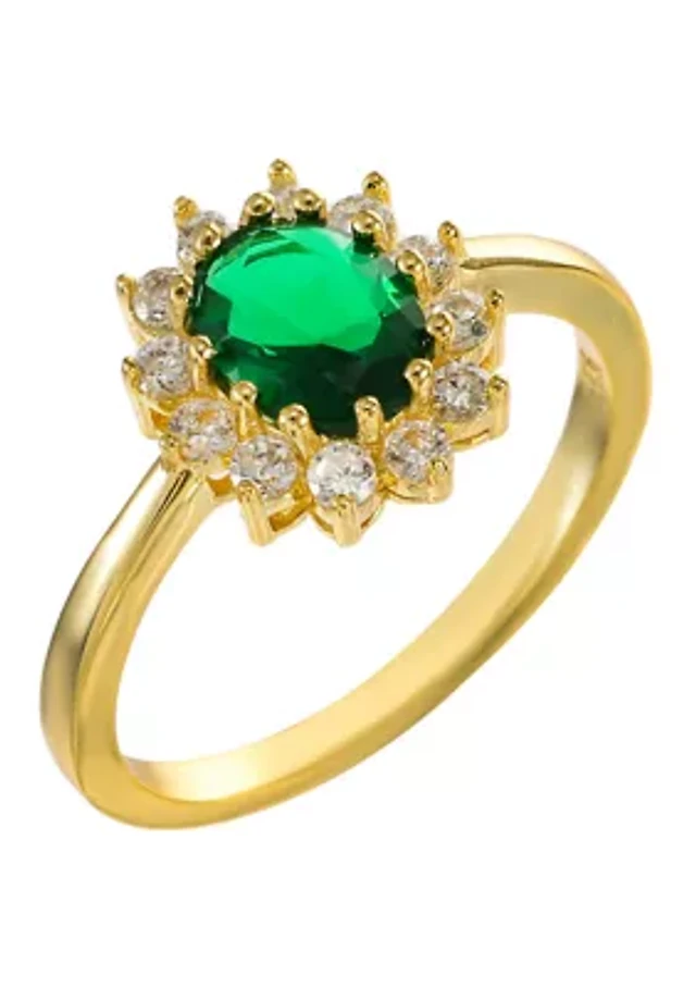 Sterling Silver CZ Halo Emerald Bridal Ring