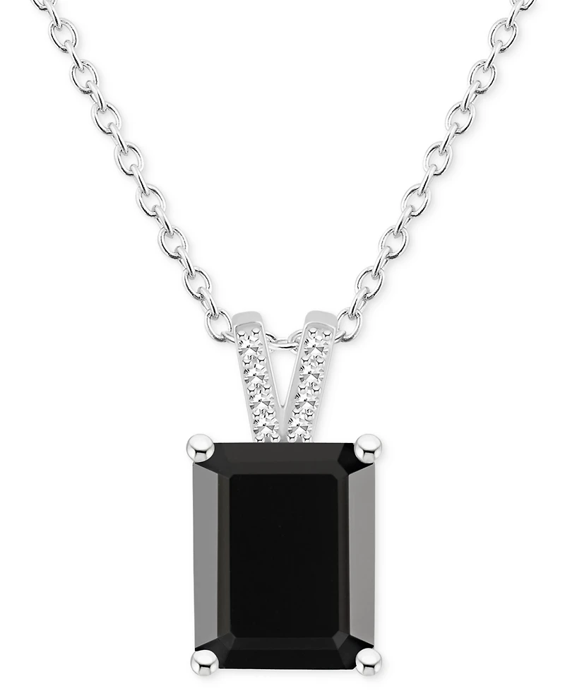Labradorite & Diamond Accent Emerald-Cut 18" Pendant Necklace Sterling Silver (Also Onyx) in Franklin, TN