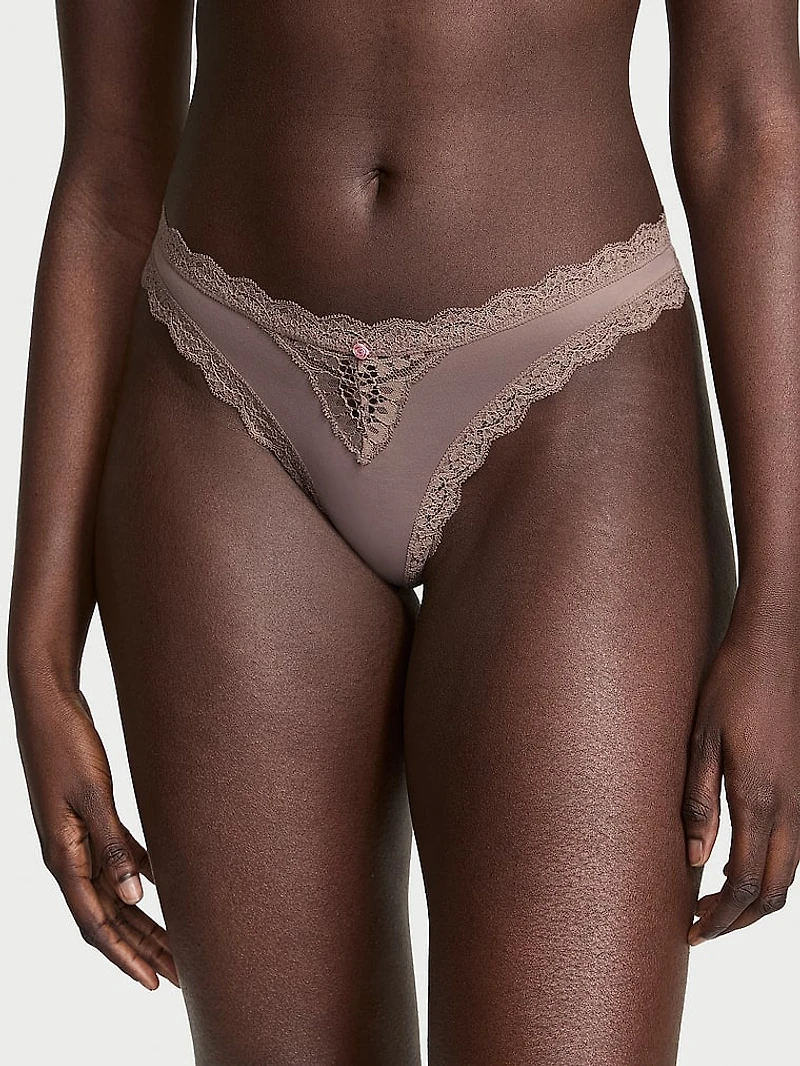 Lace Rhinestone Heart Hardware Thong Panty
