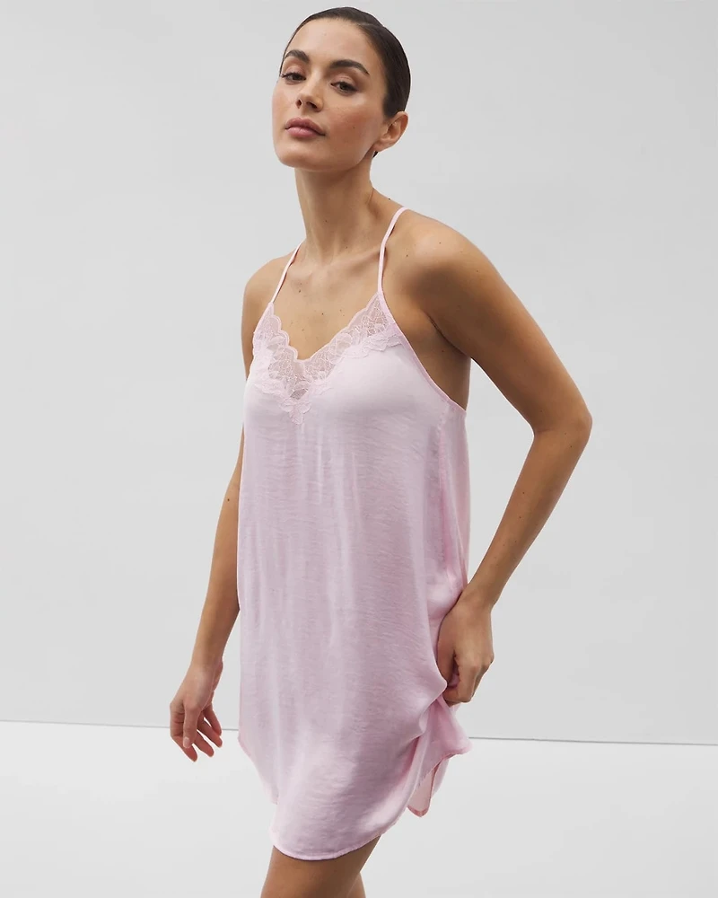 Dreams are sweeter in satin—our soft new crinkle satin chemise is trimmed in lace and the perfect sleepwear to complete your sleep collection. Details