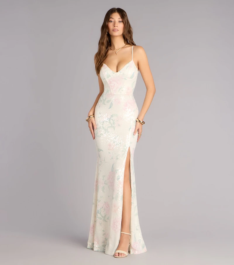 Lacey Floral Sequin Mermaid Formal Dress in Franklin, TN