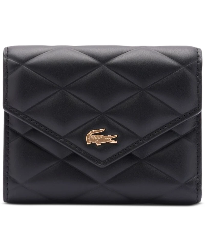 Blend iconic style with ergonomic function in this quilted Lacoste billfold wallet, designed to hold cards, bills, and coins. Multiple slots and pockets offer comprehensive organization in a feminine design.