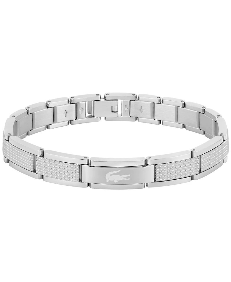 Uniting iconic brand signatures, this Lacoste bracelet features an etched design with a mix of brushed and polished finishes. The jewelry buckle closure ensures a secure, adjustable fit.
