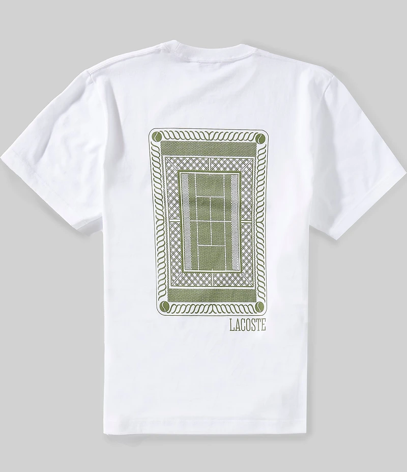 From Lacoste, this shirt features: Crew neckline Short sleeves Tonal embroidered "Croc" logo at left chest Tennis court graphic printed on back Cotton jersey Machine wash/tumble dry Imported.