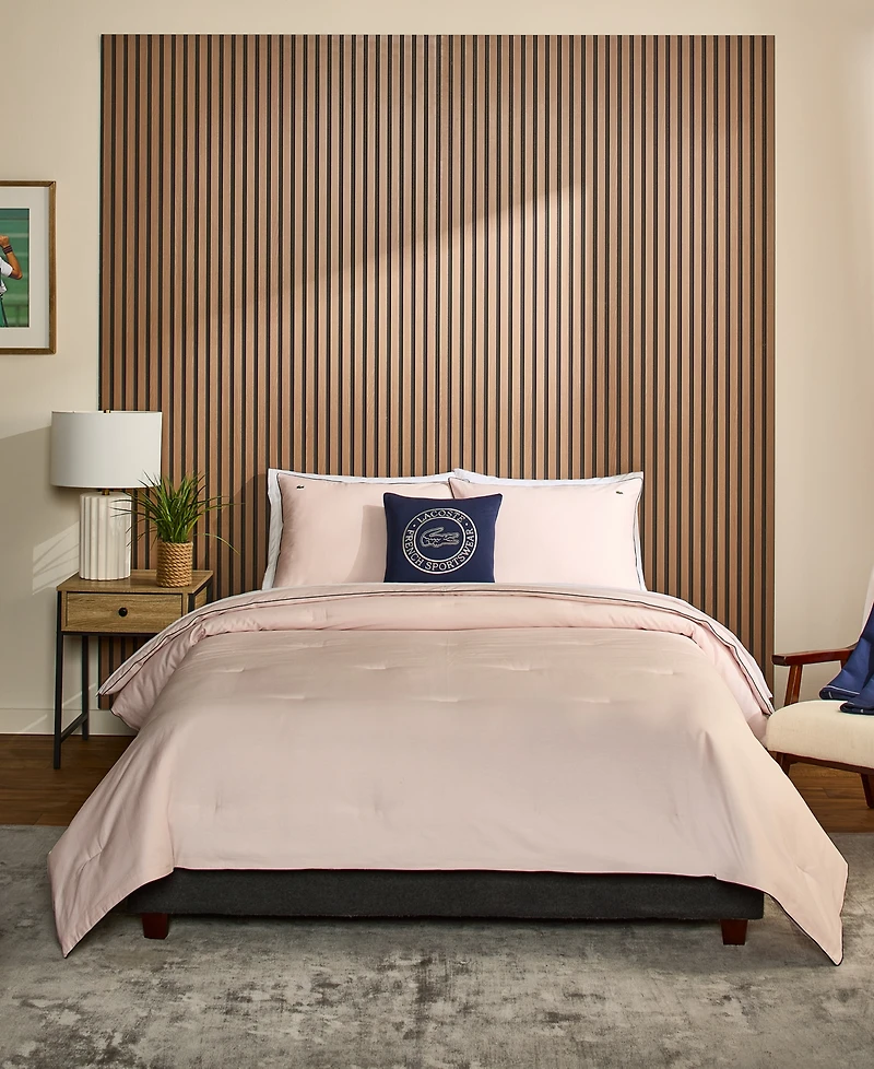 Elevate your bedroom style with the Lacoste Tiebreak Comforter for a soft, breathable feel. Featuring a textured dobby finish, solid-color piping, and the signature Lacoste crocodile logo, these bedding essentials combine timeless design with modern comfort. This comforter adds a splash of color and casual style to any bedroom, guestroom, or living room. The moment you see the iconic Lacoste logo, you know you're getting genuine Lacoste quality, style, and comfort.