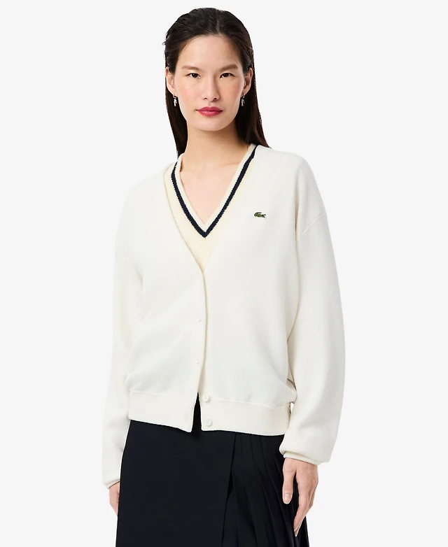 Lacoste Usa Women's V-Neck Cardigan Sweater