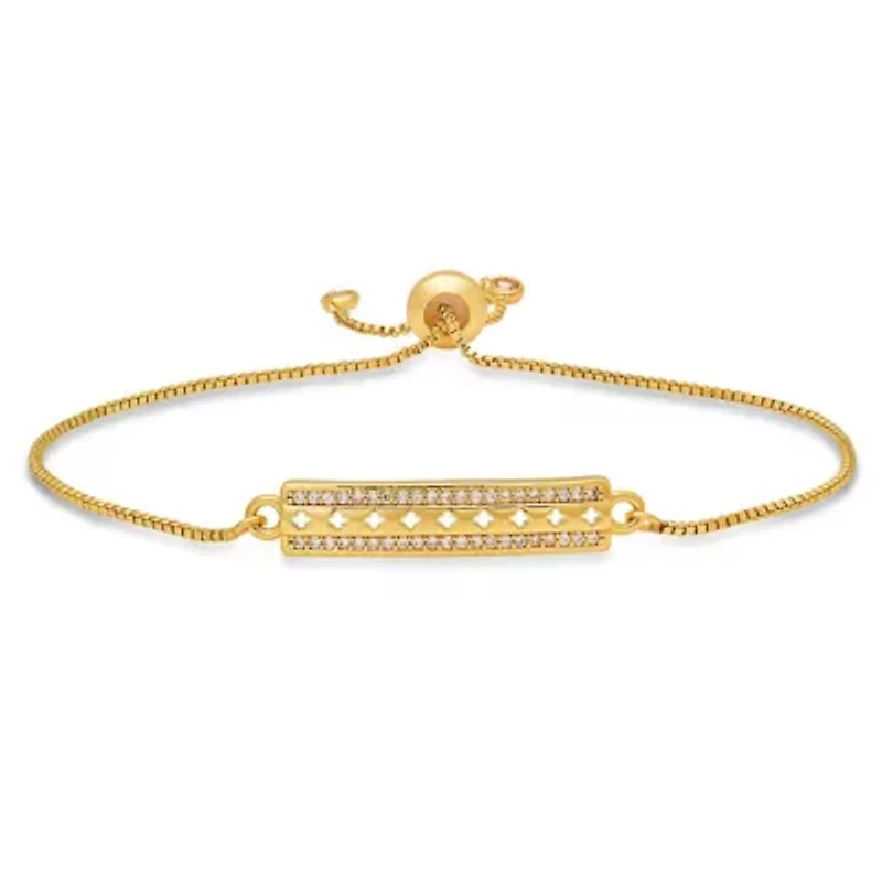 Ladies 18k gold plated brass simulated diamonds id drawstring bracelet Slip on, 42 Imported Product Specifications 9" L adjustable, id: 0.2" L x 1.3" W, there are 42 total stones, 1mm=0.005cts/0.21 total carats 0.21 Material & Care brass Gold plated Clean with a soft cloth.
