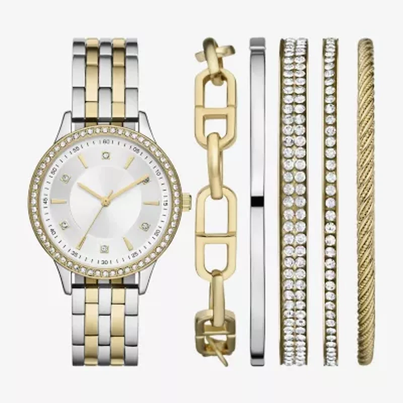 Ladies Boxed Sets Womens Crystal Accent Two Tone 6-pc. Watch Boxed Set Fmdjset711