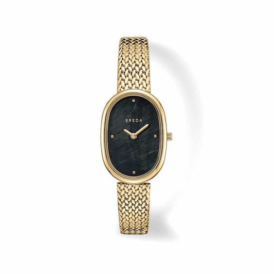 Ladies' Breda Jane Analog Watch with Black Mother-of-Pearl Dial and 18K Gold-Plated Mesh Bracelet (Model: 1741r)