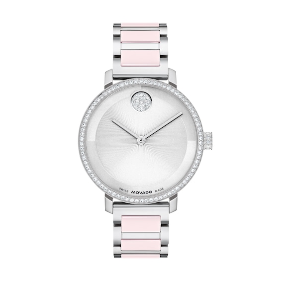 Ladies' Movado Bold® Evolution 2.0 Stainless Steel & Pink Ceramic Analog Watch with Crystal Bezel (Model: 3601300)