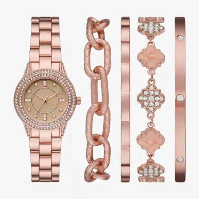 Womens Crystal Accent Rose Goldtone 5-pc. Watch Boxed Set Fmdjset717