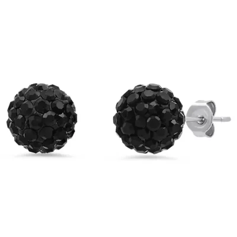Ladies stainless steel and black simulated diamond fireball stud earrings 2 Post back, Butterfly clasp Imported Product Specifications 10mm Material & Care stainless steel Stainless steel Clean with a soft cloth.