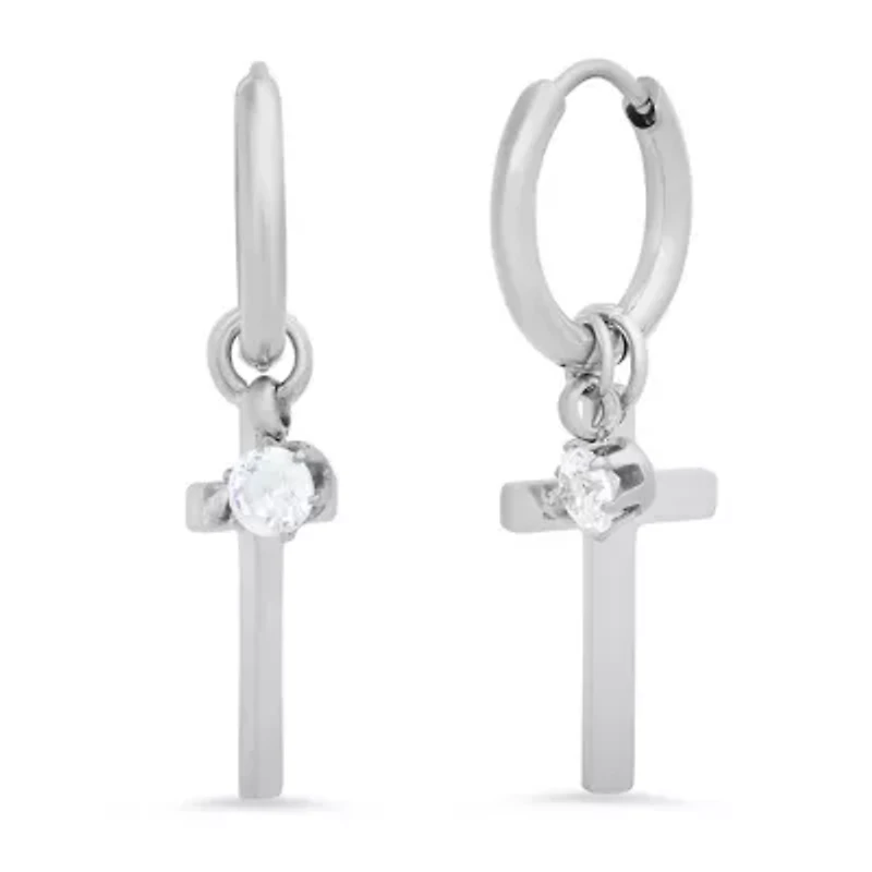 Ladies stainless steel huggies with simulated diamonds and cross charms earrings