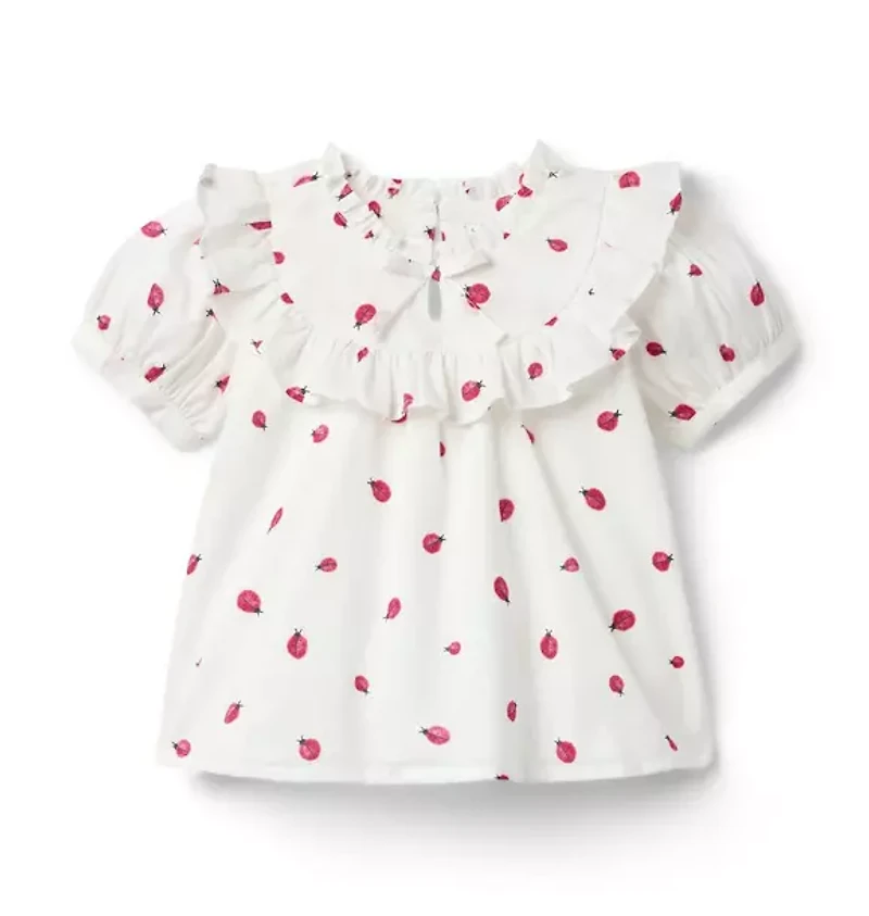 Style is spot-on with our ladybug print top. Designed in pure cotton with ruffle details, puff sleeves and a bow at the neck. 100% Cotton Batiste; Lining: 100% Cotton Fully Lined Short Sleeve Keyhole Button Back Online Exclusive Machine Washable; Imported