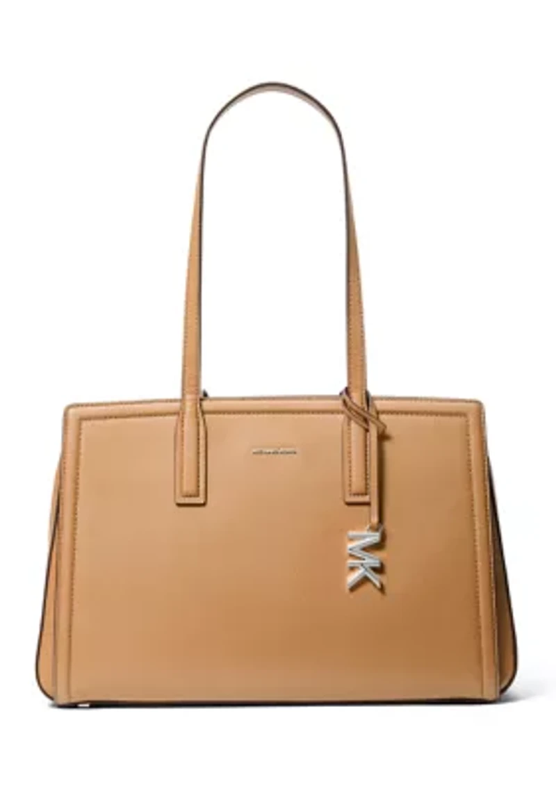 Experience effortless elegance with this MICHAEL Michael Kors leather tote. It offers ample space with interior pockets to keep your essentials organized. The comfortable shoulder strap allows for easy carrying, while the sophisticated design complements any outfit. 10.5" drop shoulder strap Interior: back slip pocket, center zip compartment, back zip pocket Imported Product Specifications 14.5" W x 10.25" H x 5.75" D Material & Care Leather Wipe clean