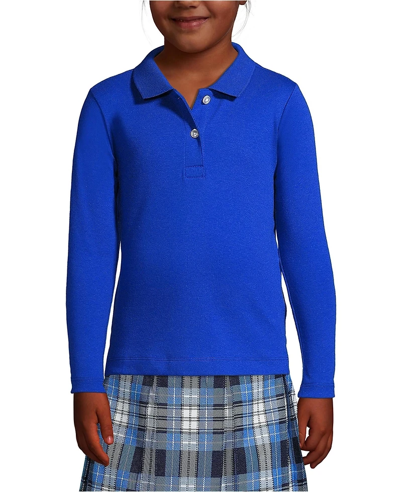 Lands' End Girls School Uniform Long Sleeve Feminine Fit Interlock Polo Shirt