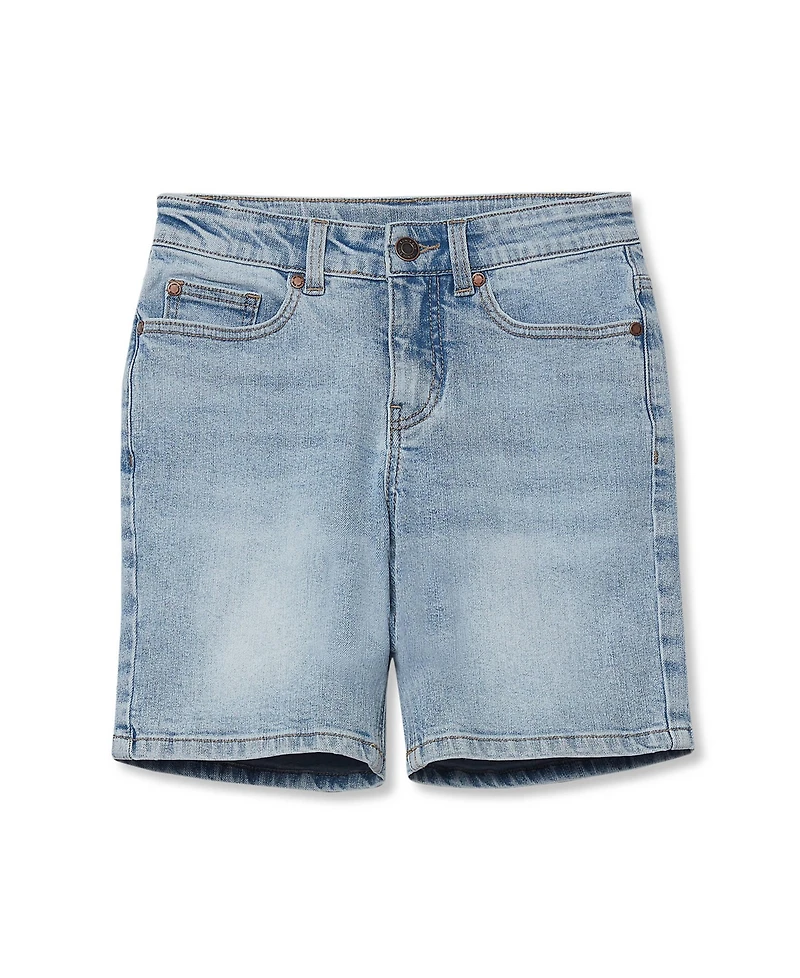 Classic denim made for everyday adventures. Our Boys 5 Pocket Denim Shorts deliver classic style with practical features. The cotton-rich fabric moves with him while the adjustable inner waistband grows alongside active kids. With a 7-inch inseam and functional zipper fly, these shorts offer both comfort and that traditional five-pocket design he'll love..