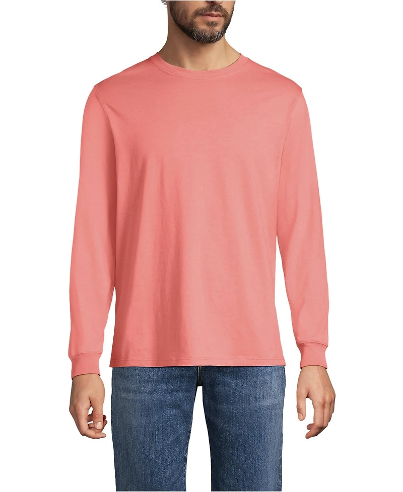 The Lands End Men s Super-t Long Sleeve T-Shirt just may be the strongest long sleeve tee you ll ever own. Stay cool and cozy in the best quality tee you can find. It s made from 100% jersey knit cotton so it stretches with you when you move. And the medium weight heft makes it less likely to tear when you re doing some serious work around the house. Plus thanks to the breathable aspects of cotton you ll have cooling comfort when you sweat. Rib-knit cuffs keep long sleeves in place for additional warmth.