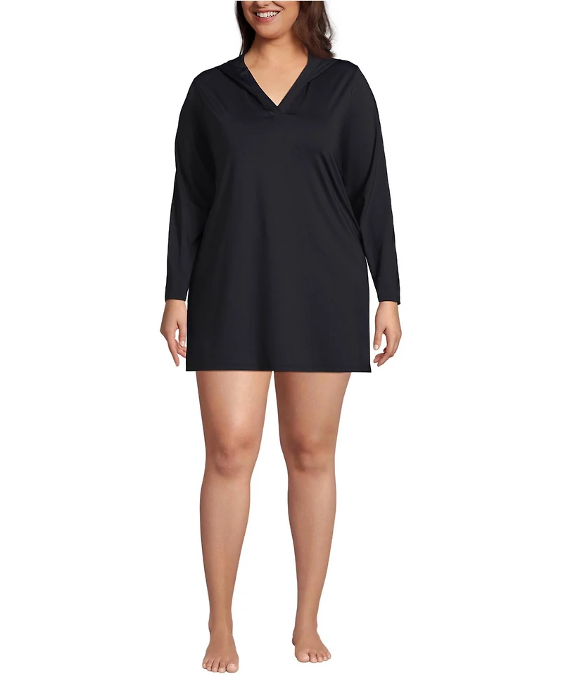 Lands' End Plus SunShade Upf 50 Hooded Mini Swim Cover-Up Dress
