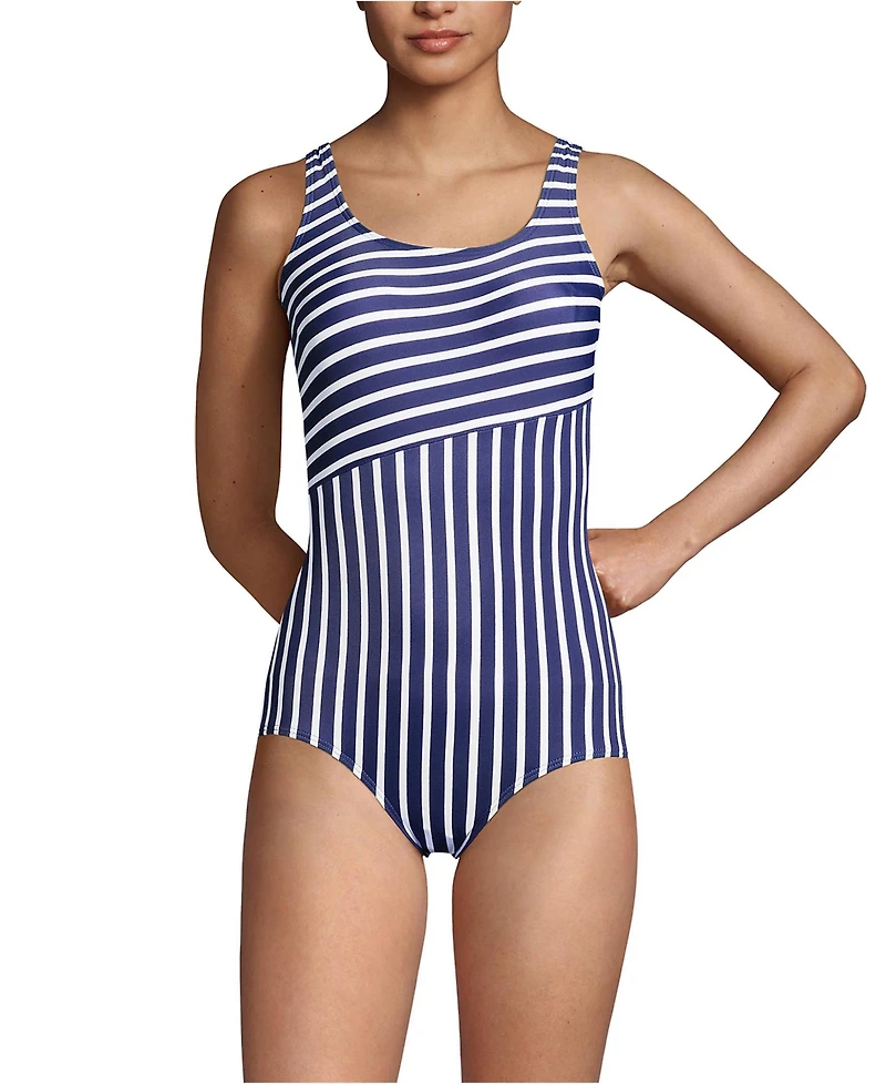 Lands' End Women's Chlorine Resistant Soft Cup Tugless Sporty One Piece Swimsuit
