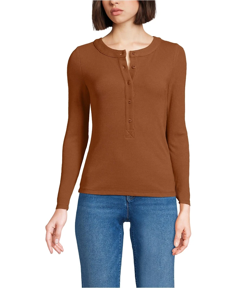 Lands' End Women's Drapey Rib Fitted Long Sleeve Henley T-Shirt