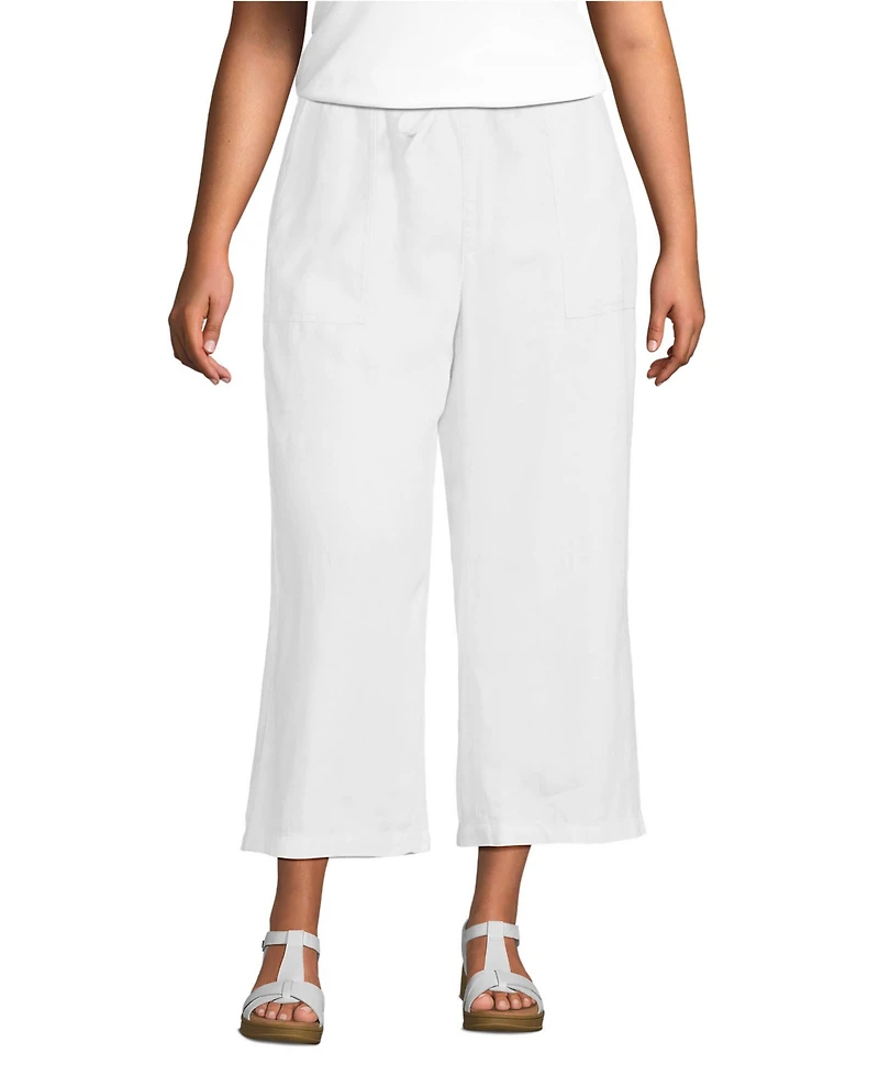 Lands' End Women's High Rise Drawstring Linen Wide Leg Crop Pants