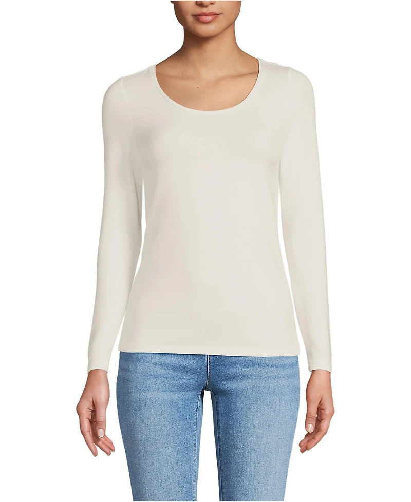 Lands' End Women's Lightweight Jersey Skimming Long Sleeve Scoop Neck T-shirt