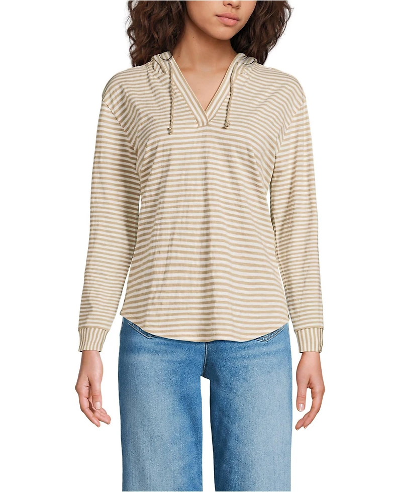 Lands' End Women's Long Sleeve Slub Hooded Popover