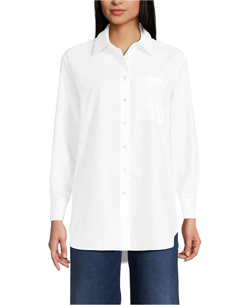 Lands' End Women's Oversized No Iron Tunic with Statement Collar Shirt