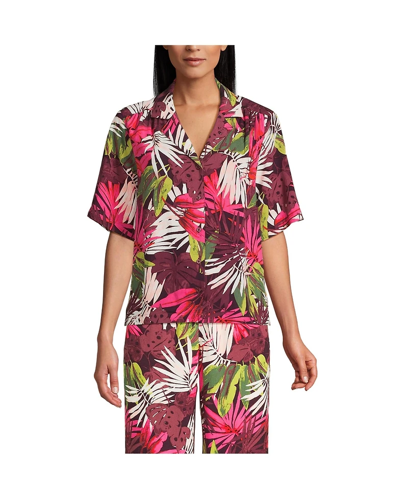 Lands' End Women's Rayon Short Sleeve Camp Shirt