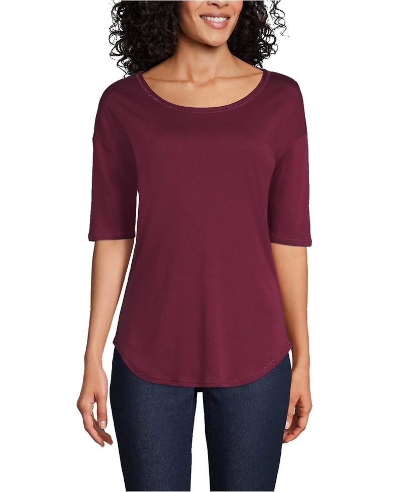Lands' End Women's Supima Micro Modal Elbow Sleeve Balletneck Curved Hem Top