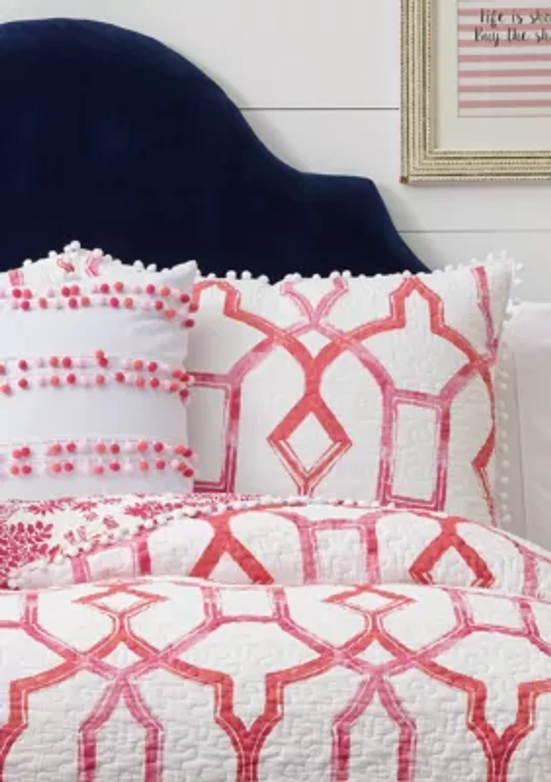 The Lanston Sham from Crown & Ivy™ features a tie back and a bright pink printed front with a complementary floral elephant icon reverse. This soft cotton piece is a must-have for adding energy and charm to your bedroom oasis. Includes: 1 sham 20" x 26" Coordinating quilt and throw pillows sold separately on belk.com Imported Belk Exclusive Material & Care Cotton Machine washable