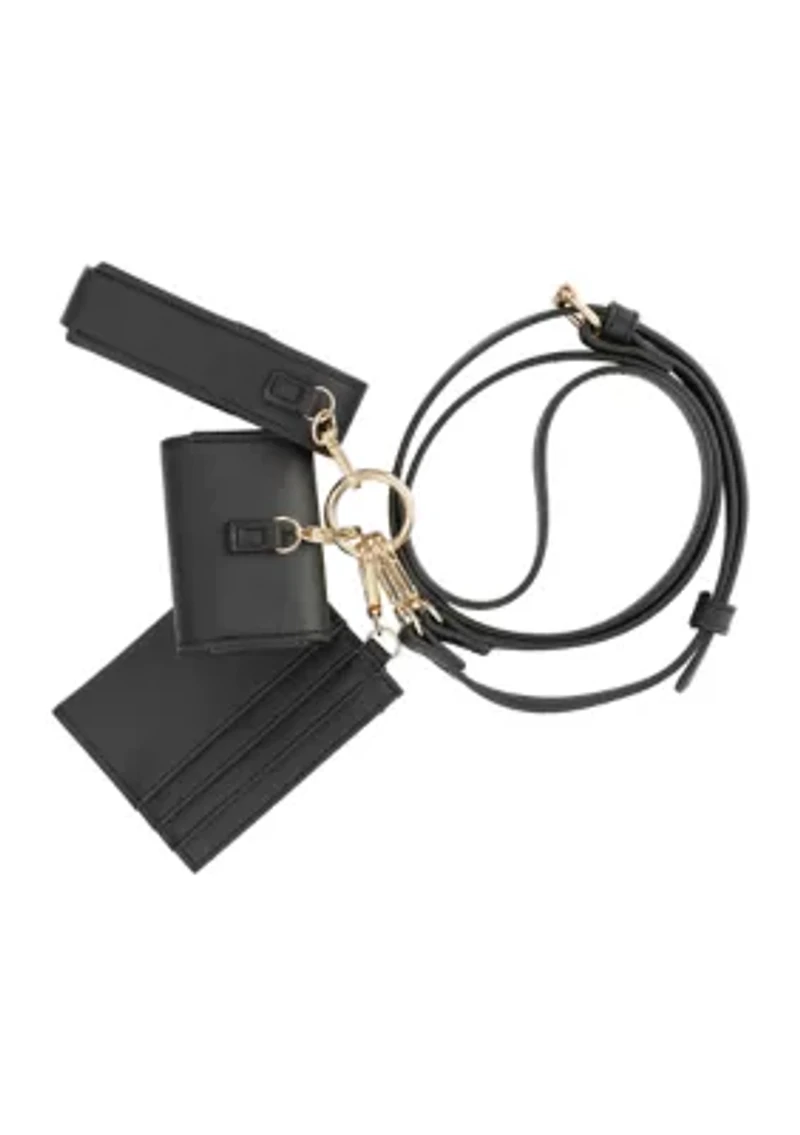 Give that special someone who lives life on-the-go the gift they'll appreciate. This Malibu Skye gift box contains three different lanyards that can serve as mini wallets or containers for earbuds or any small items you want to keep in arms reach. 3-piece set Hook-and-loop closure Removable strap Imported Product Specifications Small: 4 in x 0.25 in x 3.1 in Medium: 3 in x 0.75 in x 2 in Large: 1 in x 1 in x 4.1 in Material & Care Vegan leather Clean with a soft cloth