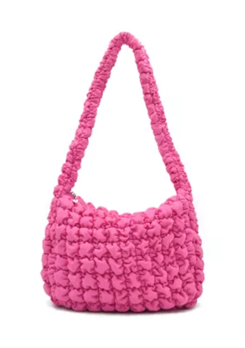 This charming hobo bag from OMG Accessories boasts a scrunchy texture for added appeal. Imported Product Specifications 4" D x 14" W x 10" H Material & Care Polyester Spot clean only