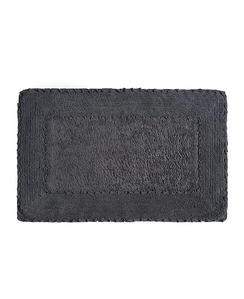 Classic Laura Ashley style meets plush comfort in this fashionable and functional bathroom rug. Featuring an assortment of rich, saturated colors, its thick cut-and-loop fibers are woven with a lovely ruffled double border, designed for long-lasting use.