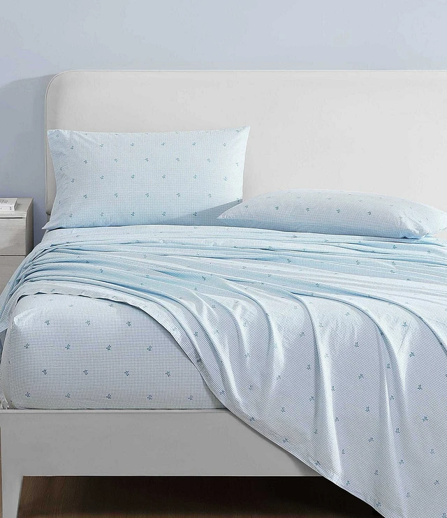 Laura Ashley Turtle Gingham Printed Cotton Percale Sheet Set