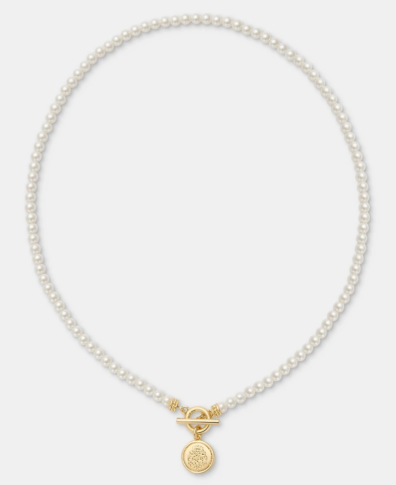 Lauren Ralph Lauren Gold-Tone Glass Pearl Coin Pendant Necklace