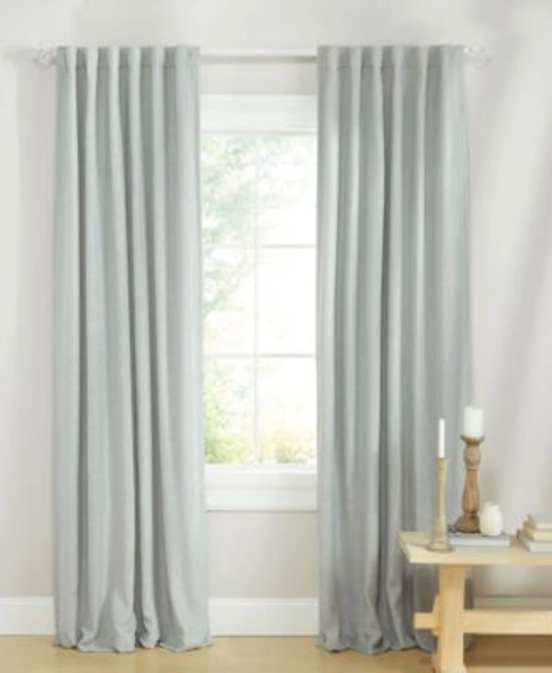 The Lauren Ralph Lauren Linen Herringbone 100% Blackout Back Tab/Rod Pocket Curtain Panel in white is finely crafted with a luxury linen-blend solid fabric with 100% blackout lining and offers an upscale, elegant, and timeless look for any room. It blocks light, provides privacy, is energy efficient, and can be hung three different ways. The Lauren Ralph Lauren window collection includes timeless essentials and designs updated with a fresh, modern spirit. Includes one panel.