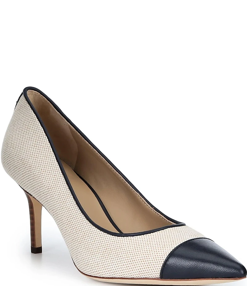 Lauren Ralph Lauren Lanette III Canvas Leather Pointed Cap Toe Pumps