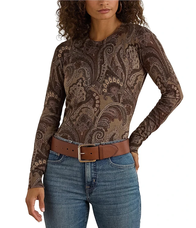 Lauren Ralph Lauren Paisley Print Cotton Blend Crew Neck Long Sleeve Sweater