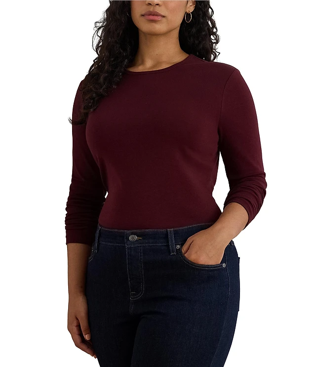 Lauren Ralph Lauren Plus Size Long Sleeve Crew Neck Stretch Top