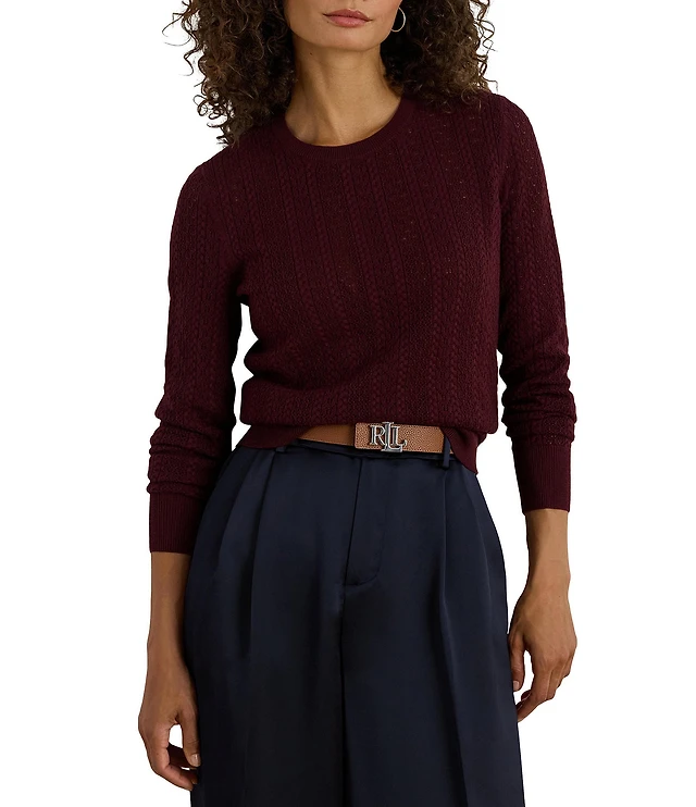 Lauren Ralph Lauren Pointelle Knit Crew Neck Long Sleeve Sweater