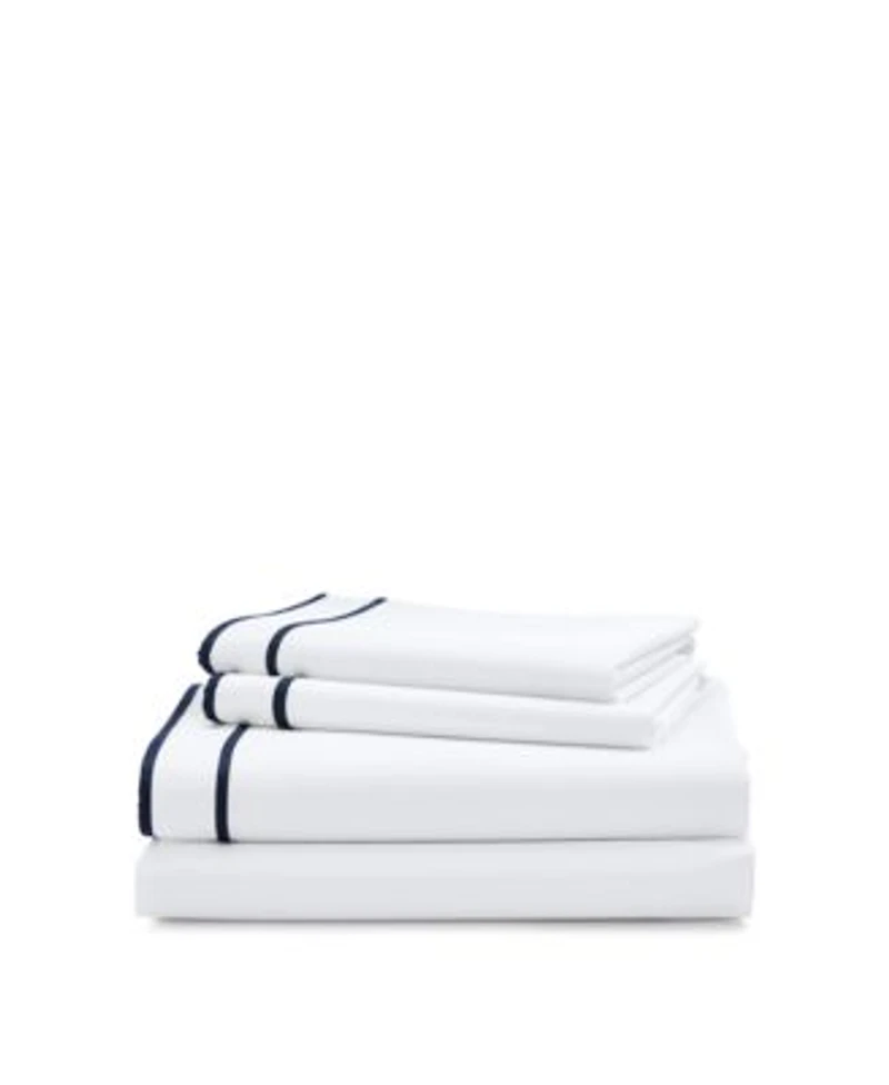 A signature pajama-stripe border defines the tailored, modern look of the Lauren Home Spencer Border sheet set. Smooth to the touch, and supremely soft, it is made from 300-thread-count cotton sateen.