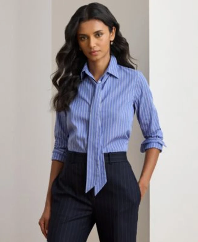 Lauren Ralph Lauren Womens Classic Fit Striped Tie Neck Shirt 0p 18