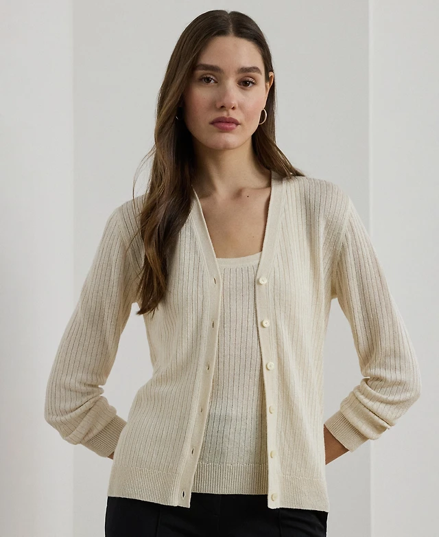 Lauren Ralph Lauren Women's Rib-Knit Linen-Blend V-Neck Cardigan