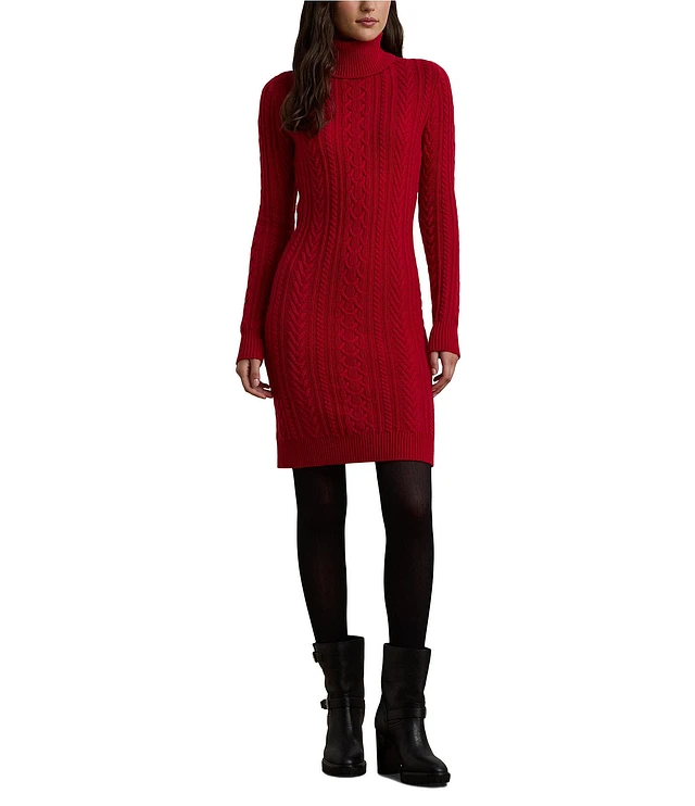 Lauren Ralph Lauren Wool-Blend Cable Knit Turtleneck Long Sleeve Sweater Dress