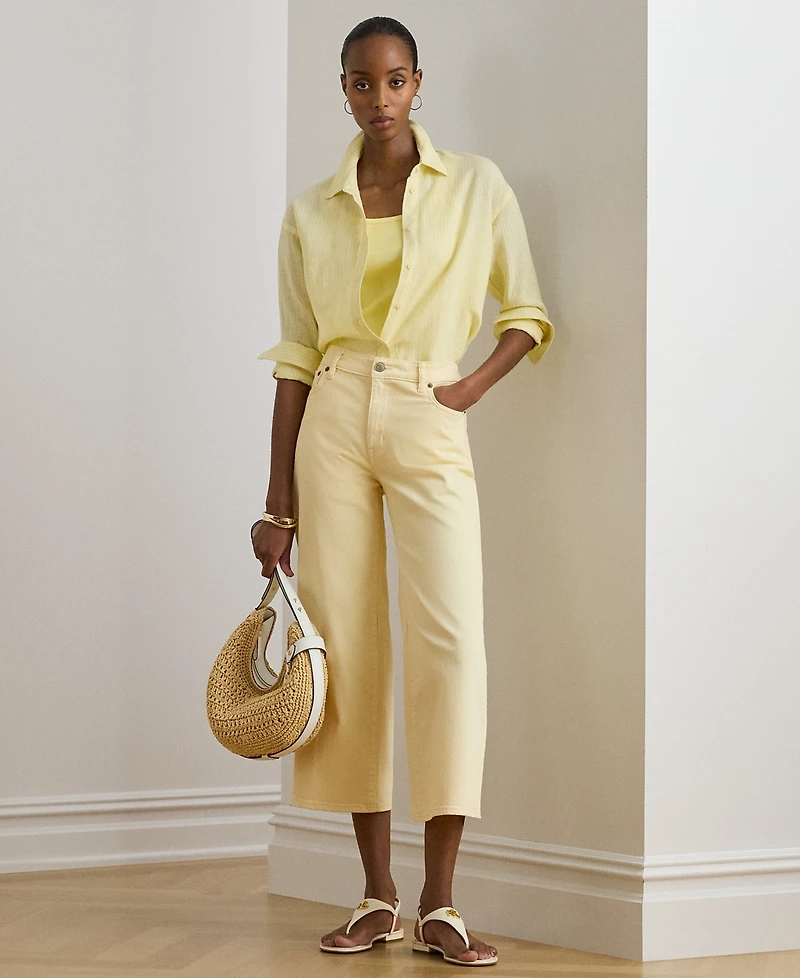 Lauren Ralph Petite High-Rise Wide-Leg Cropped Jeans